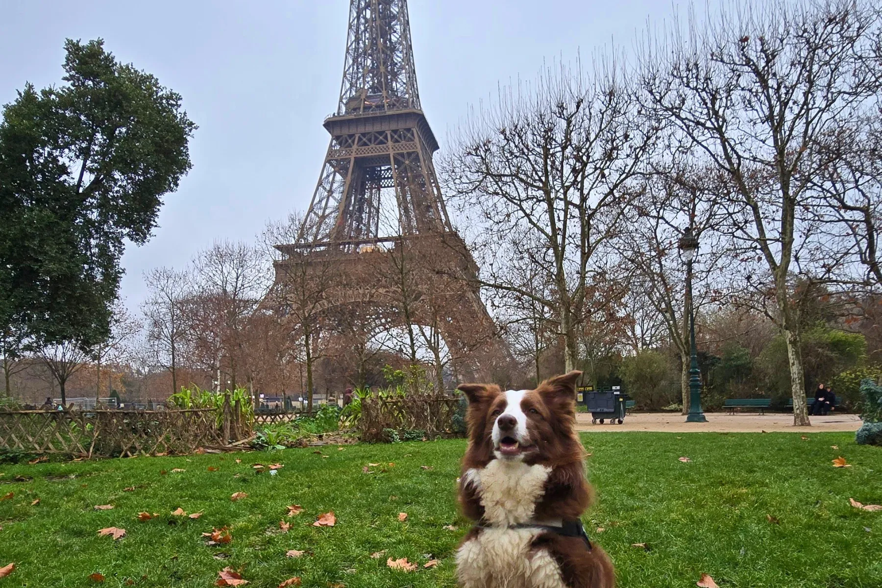 The tour concludes in the green spaces near the Eiffel Tower, where dogs can play freely (according to park rules) while humans relax and enjoy a coffee break.