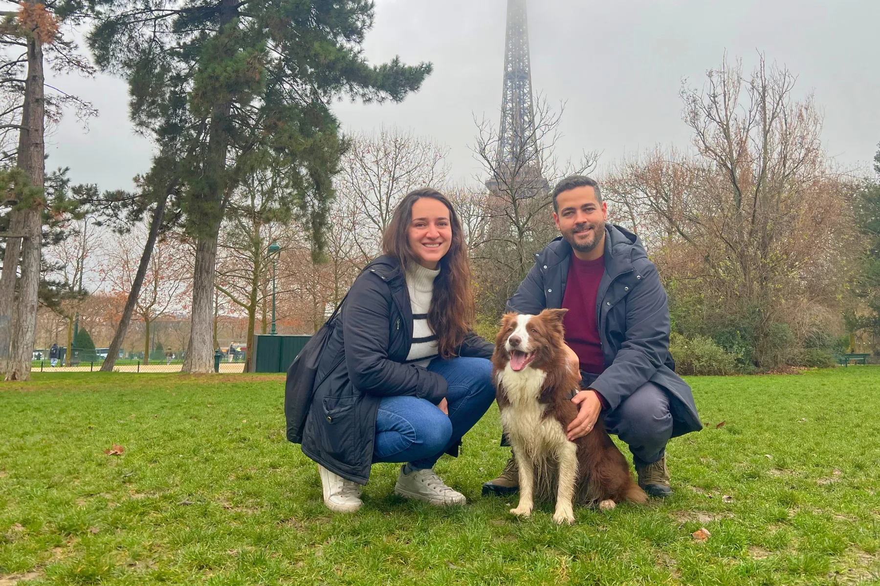 The tour ends in the Eiffel Tower park, where dogs can enjoy time to move and play while humans relax and take in the view.