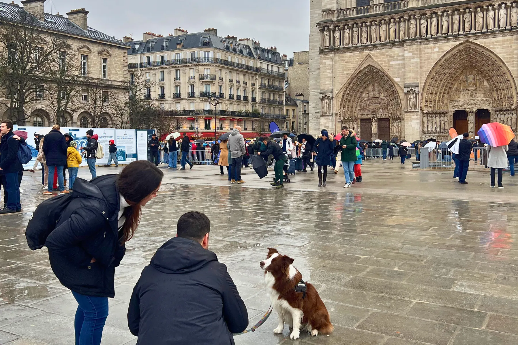 We meet in front of Notre-Dame Cathedral and begin with a calm introduction for both dogs and humans.