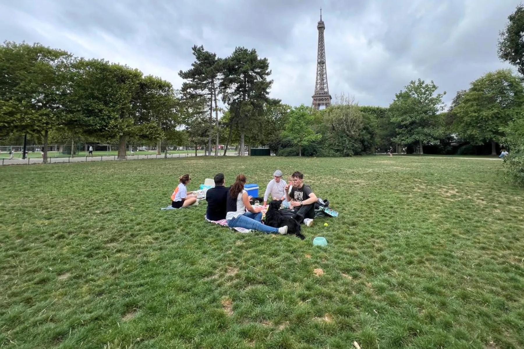 Midway through the tour, you will enjoy a carefully prepared French picnic in a green park near the Eiffel Tower. This location offers space for dogs to play while families relax and enjoy the moment.